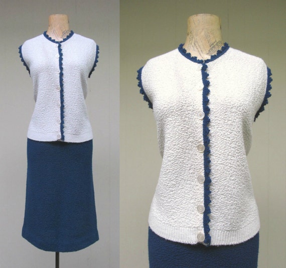Vintage 1950s White And Navy Bombshell Knit Set 50s Acrylic Etsy Norway