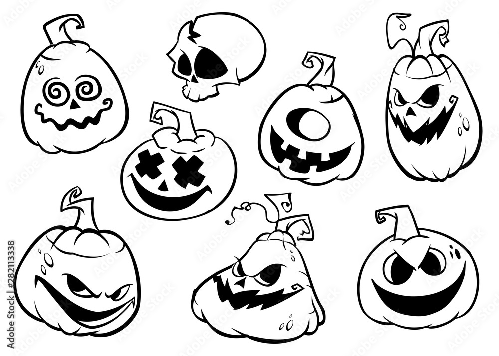 Cartoon Scary Jack O Lantern Pumpkins Set Outlined Stock Vector Adobe Stock
