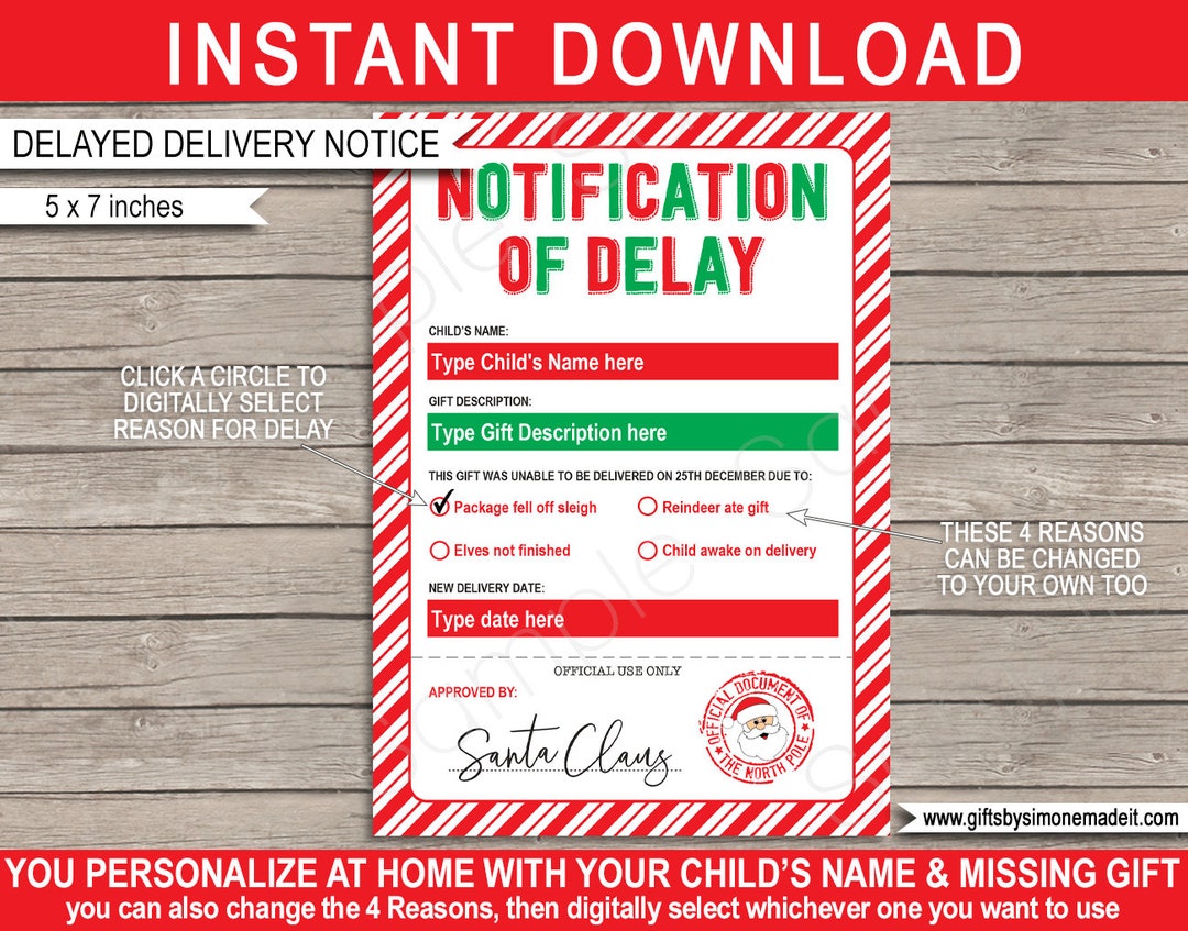 Late Gift Letter From Santa Delayed Christmas Gift Notice Etsy Uk