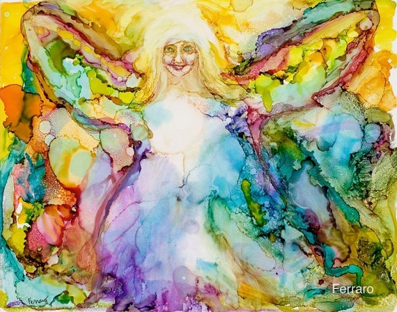 8 X 10 Abstract Angel Painting Angel Painting Angel Art Angel Drawing
