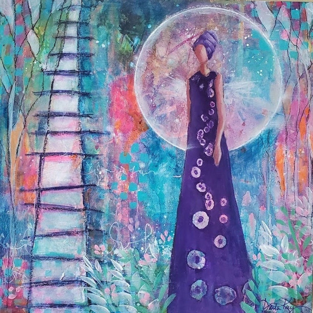 12x12 Original Painting Celestial Climb Soulful Mystical Spiritual Garden Abstract Angel Gift Art Mixed Media Female Figurative Etsy
